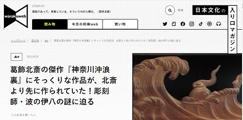 小学館の「和樂web」で、波の伊八についての記事が掲載されました。伊八会の活動や、没後200年記念キャンペーンについても取り上げていただきました。